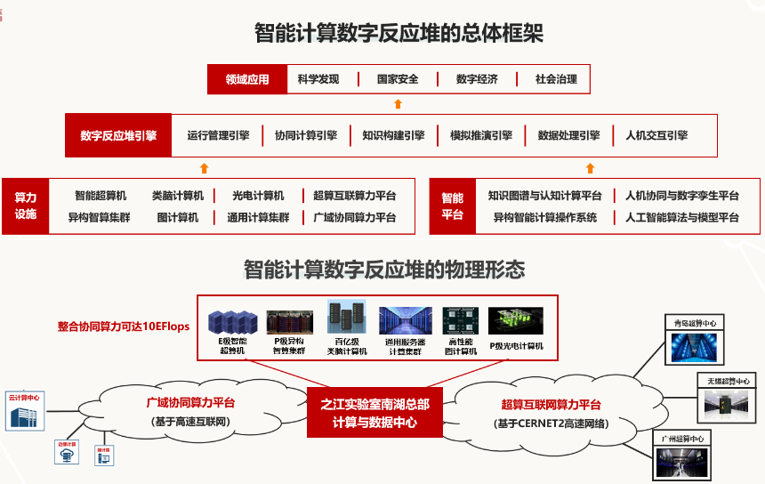 研究建立智能計算理論、技術(shù)、標準體系;融合異構(gòu)計算、類腦計算、生物計算等先進計算技術(shù),建設(shè)智能計算硬件系統(tǒng);融合廣域異構(gòu)協(xié)同操作系統(tǒng)、天樞人工智能開放平臺等,建設(shè)智能計算軟件系統(tǒng);建設(shè)計算社會學、計算生物學、計算材料學、計算環(huán)境學、計算氣候?qū)W、計算宇宙學、計算海洋學、計算醫(yī)藥學、計算育種學、計算地球?qū)W等領(lǐng)域的數(shù)字反應(yīng)釜,以人工智能方式調(diào)控各數(shù)字反應(yīng)釜的數(shù)字裂變和聚變,最終建成智能數(shù)字反應(yīng)堆。